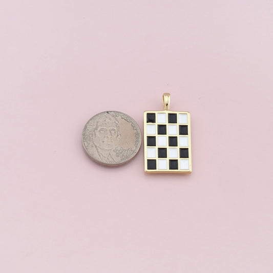 18K Gold Filled Checkered Pendant,Enamel Checker Charm
