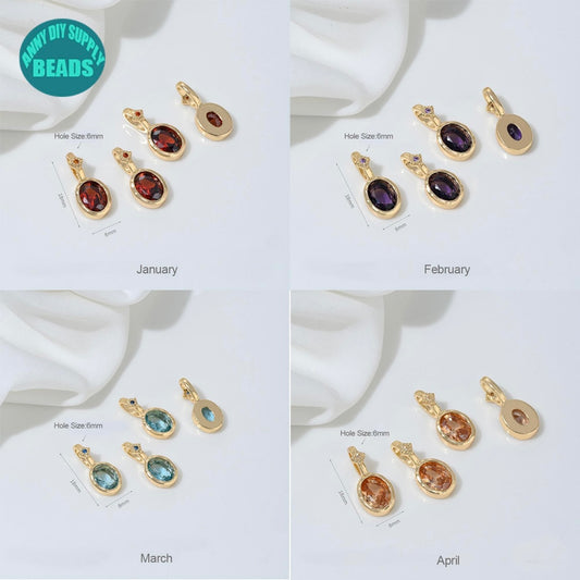 14K Gold Plated Birthstone charm,Oval Pendant,Colorful CZ Star Charm