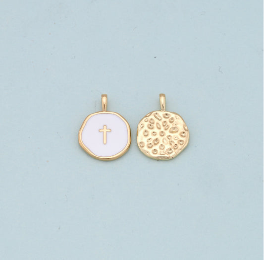 18k Gold Filled Cross Pendant + White Enamel