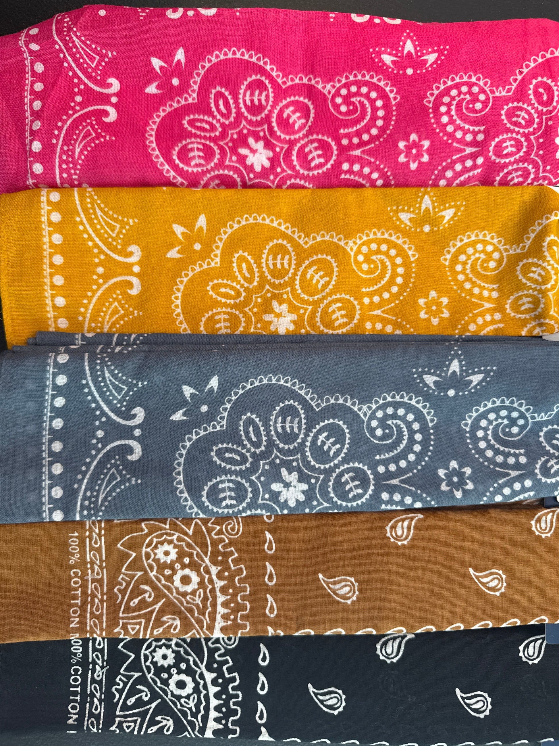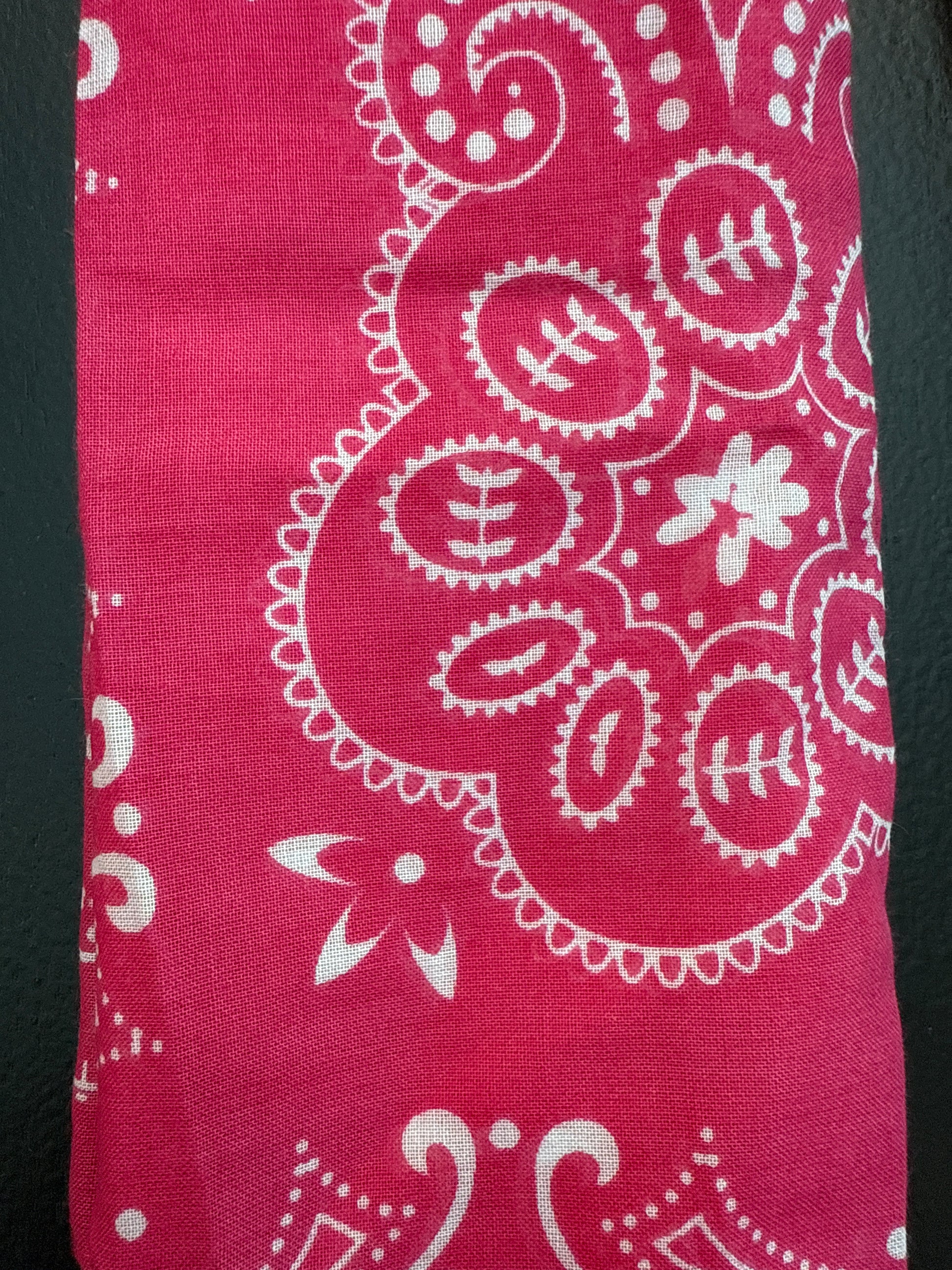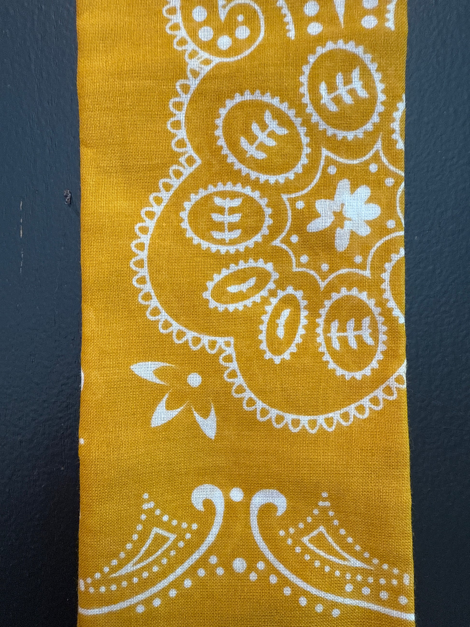 3 pieces of bandana braided together for the base of your necklace. Mixing colors is ok, just add in notes.